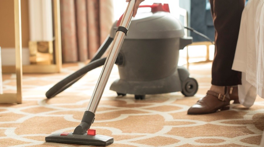 用吸塵器全面吸塵,稀釋清潔劑,也可注入水箱。在地毯上全面噴灑清潔劑,作用10-15分鐘后,污漬脫離纖維,用洗地機(jī)抽洗,操作向后行走而使每操作行有一部分重疊,最少經(jīng)過兩次抽洗,在清洗地毯的同時,用吸水機(jī)吸凈已洗完的地毯,讓地毯完全干透,為加快地毯干透,可開動地毯吹干機(jī)。